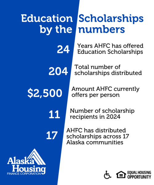 The 2025 Education Scholarship application period closes on May 31, 2025 at 5:00 p.m. Alaska Time. Apply today!